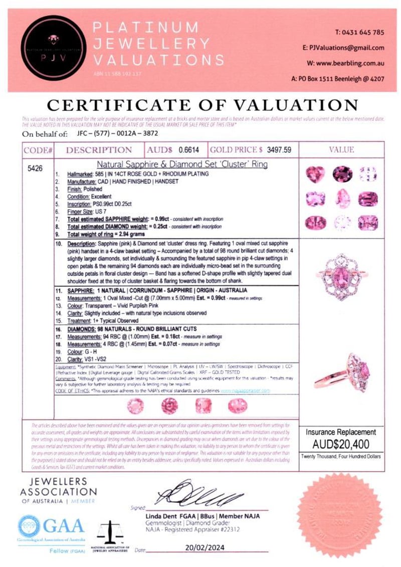 14CT ROSE GOLD PINK SAPPHIRE AND DIAMOND CLUSTER RING
