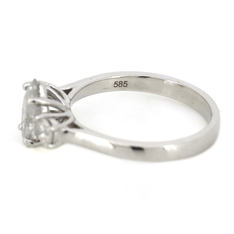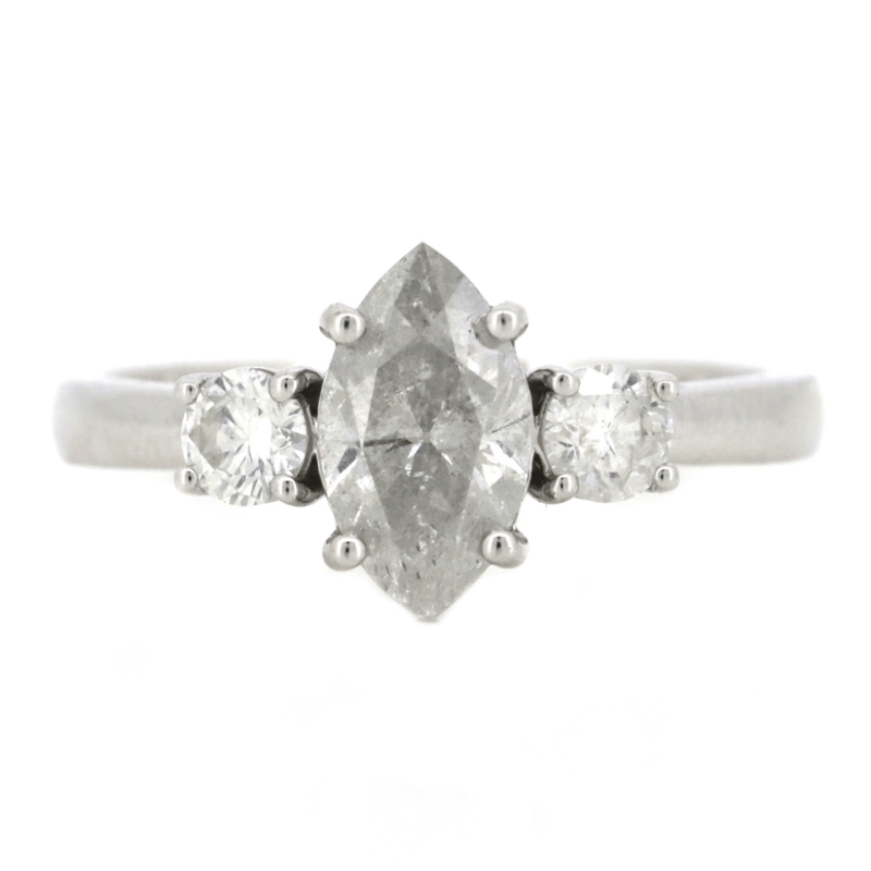 14K WHITE GOLD AND DIAMOND, TRILOGY RING. The Centre Features, One Marquise Cut, Diamond (1.00Ct, G-H Colour, I2+ Clarity), Claw Set. Flanking Either Side Of The Centre Are, 2 Round Brilliant Cut, Diamonds (0.28Ct Tdw, G-H Colour, Si2-I1 Clarity), Claw Set. Ring Size M. Valuations Provided by an Independent Third-Party Professional Not Directly Associated With Lloyds Auctions at AUD $$18,800.00This valuation has been conducted by an independent third-party professional. The valuation amount is an assessment by the issuing valuer and does not reflect the auction value of the item. Any inquiries regarding the valuation should be directed to the issuing valuer (refer to contact details on the certificate), as Lloyds Auctions has no affiliation or influence over the valuation, the valuer, or the stated amount. Condition: Good - Refer Images 0645975+1