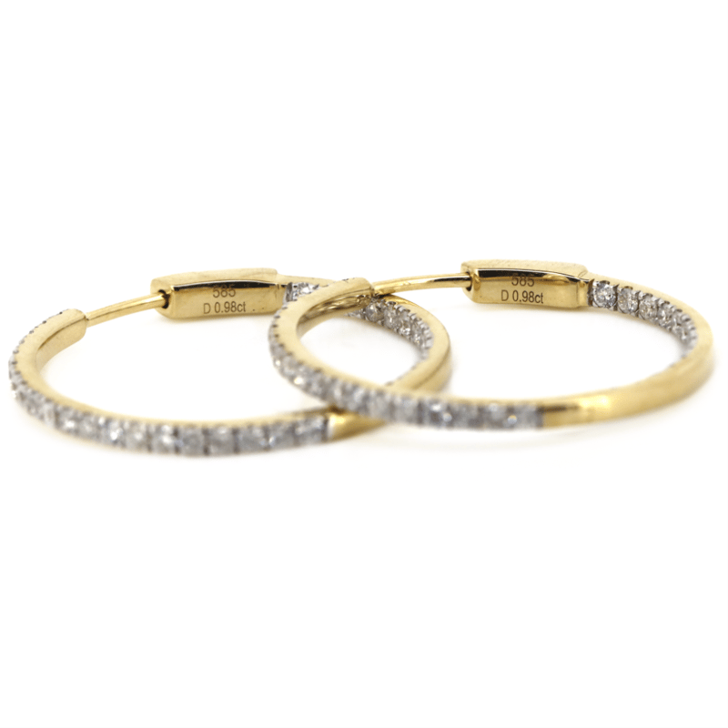 14K YELLOW GOLD, 0.98CT TDW DIAMOND, HOOP EARRINGS. The Hoops Feature, 68 Round Brilliant Cut, Diamonds (0.98Ct Tdw, G-H Colour, Si1-Si2 Clarity), 4 Claw Set. The Earrings Have Hinged Closures. Valuations Provided by an Independent Third-Party Professional Not Directly Associated With Lloyds Auctions at AUD $$15,000.00This valuation has been conducted by an independent third-party professional. The valuation amount is an assessment by the issuing valuer and does not reflect the auction value of the item. Any inquiries regarding the valuation should be directed to the issuing valuer (refer to contact details on the certificate), as Lloyds Auctions has no affiliation or influence over the valuation, the valuer, or the stated amount. Condition: Good - Refer Images 0645975+2