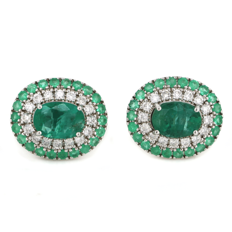 14K WHITE GOLD, EMERALD AND DIAMOND, DOUBLE HALO EARRINGS. The Design Features, 2 Oval Faceted Cut, Emerald (1.80Ct Tsw, Eye Visible Surface Reaching Inclusions), 4 Claw Set In White Gold. Embellishing The Design In The Inner Halo Are, 32 Round Brilliant Cut, Diamonds (0.36Ct Tdw, G-I Colour, Si-I1 Clarity), Micro-Bead/Bezel Set. Decorating The Outer Halo Are, 44 Round Faceted Cut, Emeralds (0.50Ct Tsw, Moderate Inclusions) Micro-Bead Set. The Earrings Have Post Backs With Butterfly Clasps. Valuations Provided by an Independent Third-Party Professional Not Directly Associated With Lloyds Auctions at AUD $$15,900.00This valuation has been conducted by an independent third-party professional. The valuation amount is an assessment by the issuing valuer and does not reflect the auction value of the item. Any inquiries regarding the valuation should be directed to the issuing valuer (refer to contact details on the certificate), as Lloyds Auctions has no affiliation or influence over the valuation, the valuer, or the stated amount. Condition: Good - Refer Images 0645975+9