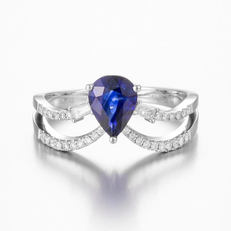 Featuring Centre, One Pear Cut, Deep Moderate Blue Australian Sapphire (1.32Ct, Moderately Included), Claw Set, With 2 Baguette And 32 Round Brilliant Cut Diamonds (0.23Ct Tdw, G-H Colour, Vs2 Clarity), Claw Set. Ring Size O.
