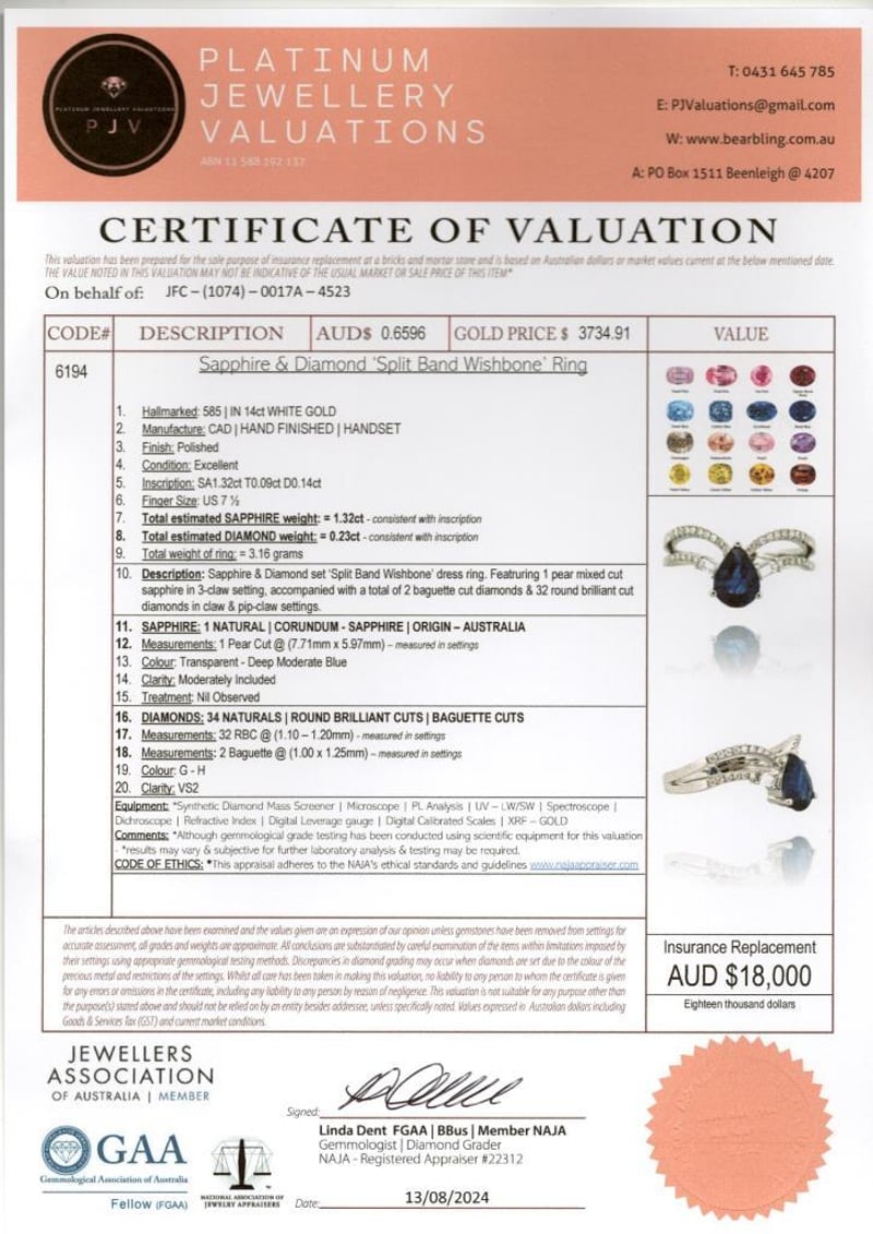 This valuation has been conducted by an independent third-party professional. The valuation amount is an assessment by the issuing valuer and does not reflect the auction value of the item.