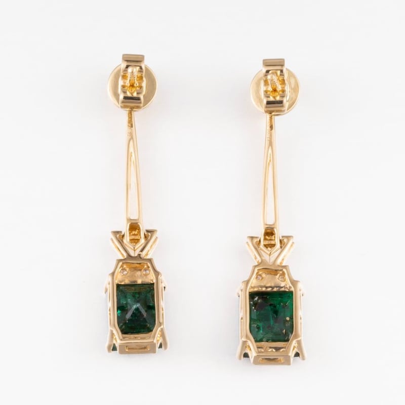 14CT YELLOW GOLD ZAMBIAN EMERALD AND DIAMOND ART DECO STYLE EARRINGS