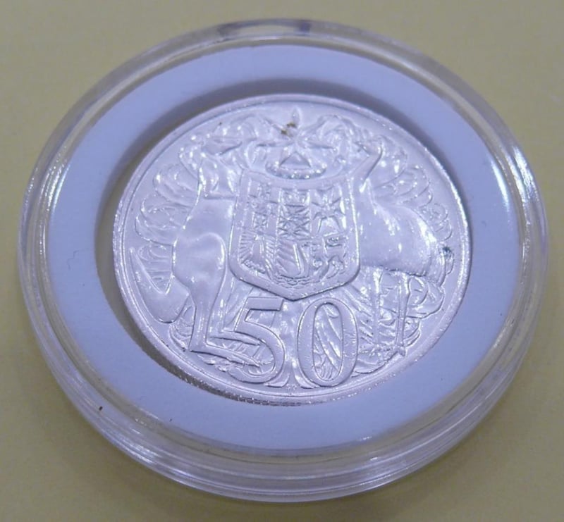1966 UNCIRCULATED 50 CENTS ROUND SILVER COIN IN CAPSULE. 488547+19