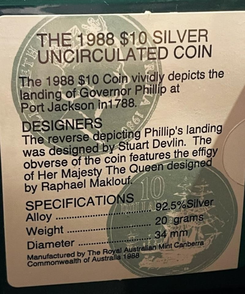 1988 AUSTRALIAN $10 SILVER COIN 0.927 SILVER Silver Coin 0.927 Silver And 20 Grams 488550+19