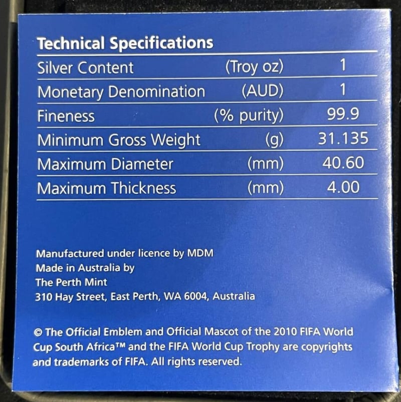 2010 PERTH MINT FIFA WORLD CUP 1OZ 999 SILVER PROOF COIN South Africa 1Oz 999 Silver Proof Coin 488550+29