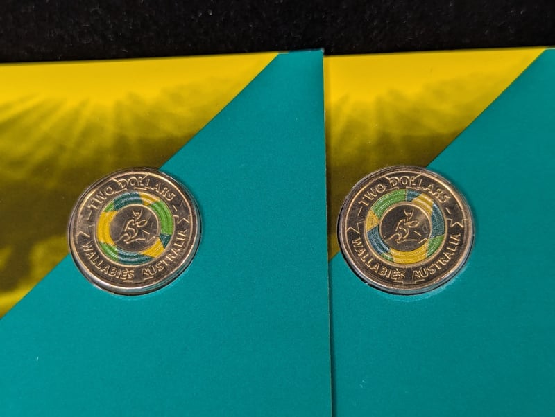 Two 2019 Wallabies Coloured Two Dollar Coins,