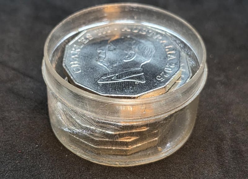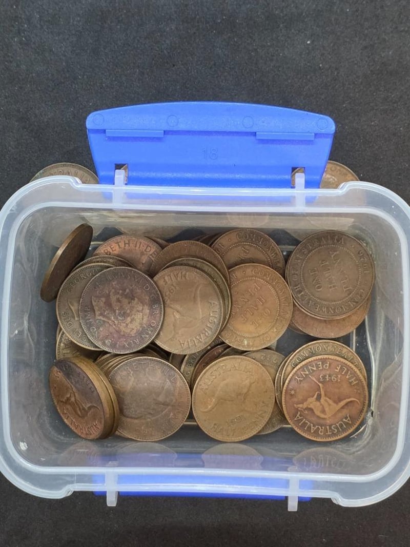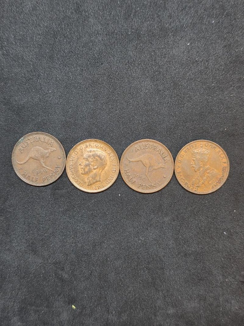 AUSTRALIAN PRE-DECIMAL BRONZE HALF PENNIES AND 2025 AUSTRALIAN 50 CENT COINS.