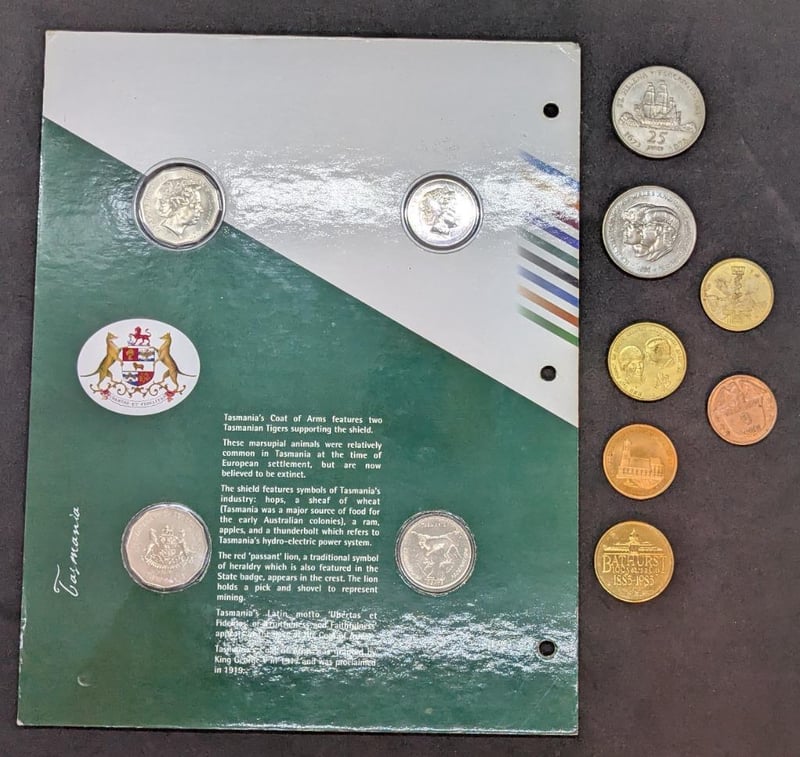 COLLECTION OF COMMEMORATIVE COINSIncludes Australian Coat Of Arms Four-Coin Set, Australian Bathurst 100 Years A City 1885 - 1985 Coin, President Eight Token Coin, EtcCondition: Aunc584470+23