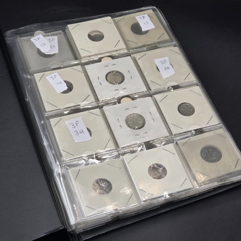 Collection Of Australian Threepence Coins, Featuring The Classic Wheat Ear Design. Includes Coins From Multiple Reigns With Typical Circulated Condition And Varying Toning. Stored In Protective Sleeves. Conditions Vary