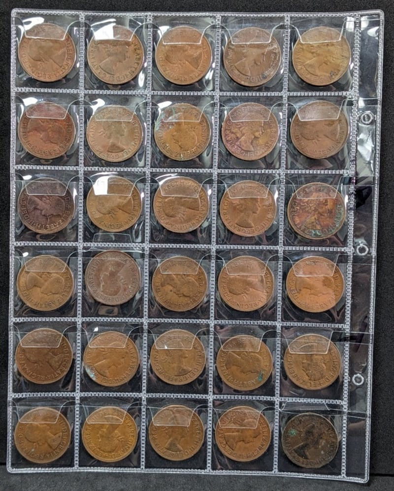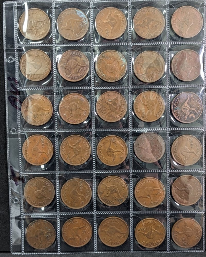 30 X 1958 AUSTRALIAN ONE PENNY COINS IN SLEEVES