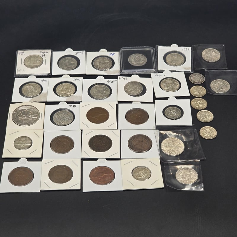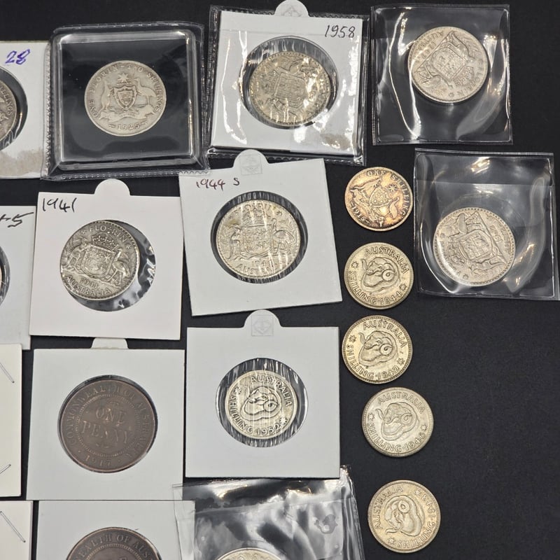 AUSTRALIAN PENNY'S, SHILLINGS AND FLORINS VARIOUS DATES AND DENOMINATIONS232990+15