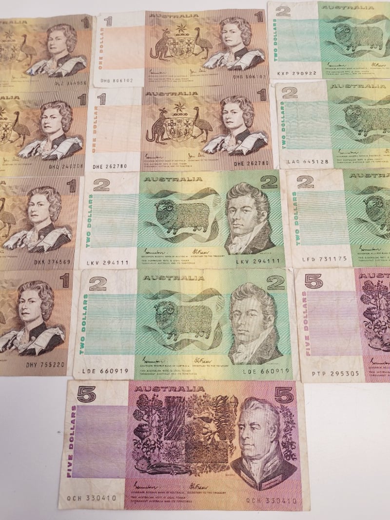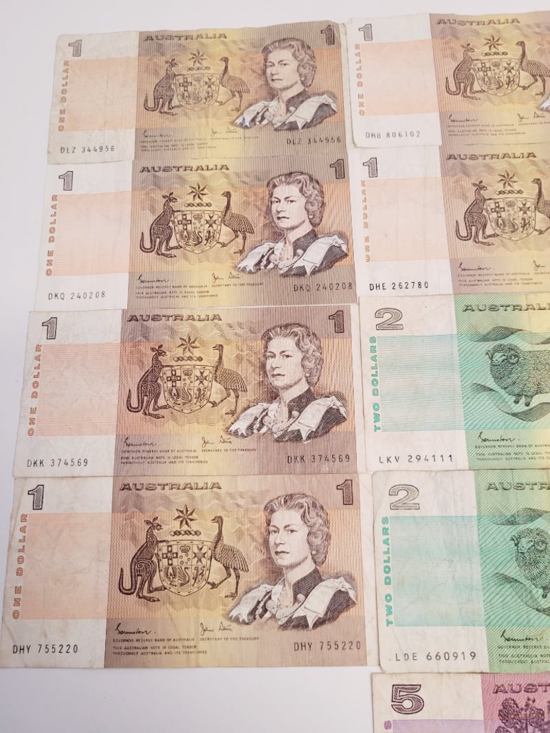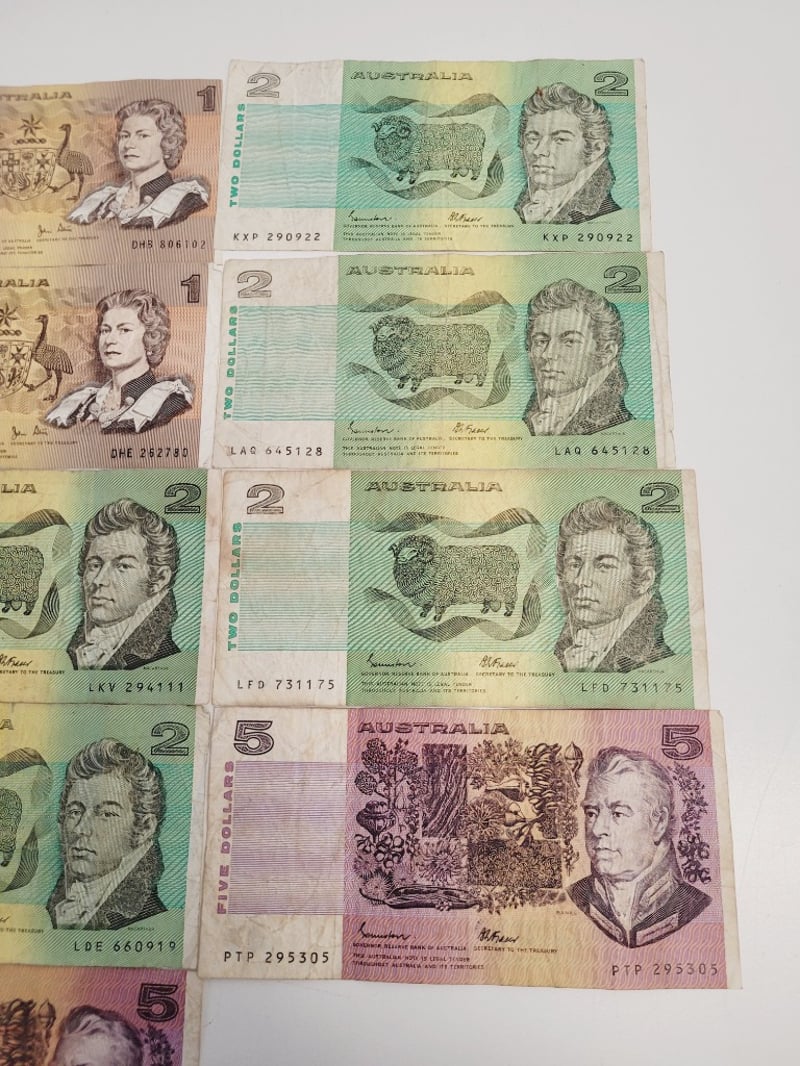 ASSORTED AUSTRALIAN $1 $2 $5 BANK NOTES.488544+30