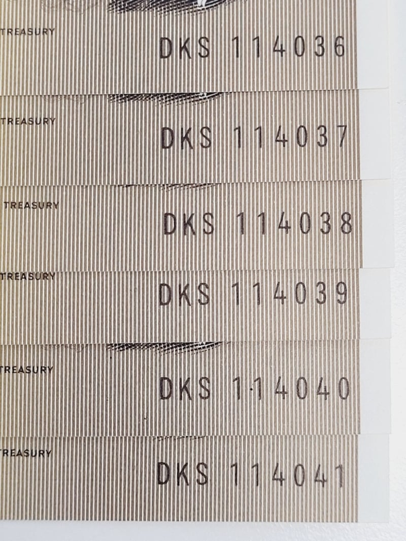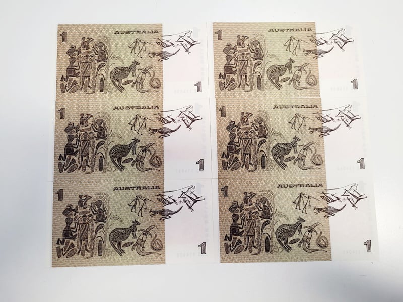 AUSTRALIAN $1 CONSECUTIVE BANKNOTES - J/STONE SIGNED. DKS114036-DKS114041, aUNC-UNC488544+34