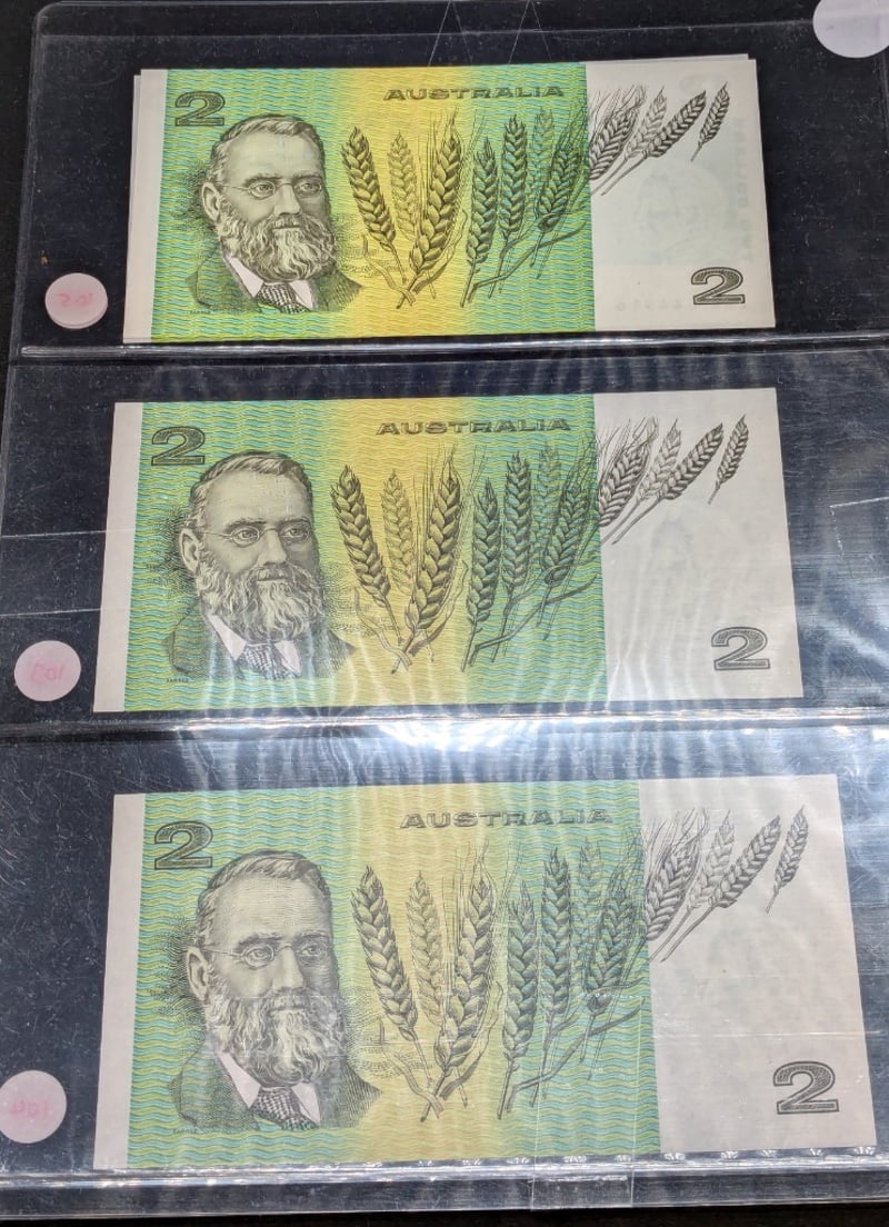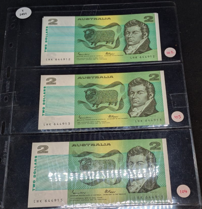 FOUR AUSTRALIAN TWO DOLLAR CONSECUTIVE BANK NOTES, SIGNED JOHNSTON & FRASER