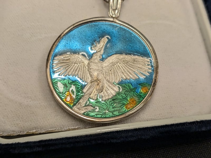 ROYAL AUSTRALIAN MINT COCKATOO SILVER PENDANT WITH ENAMEL DETAIL AND 2017 AUSTRALIAN 1967 REFERENDUM FIFTY YEARS FIFTY CENT COINA Condition: Unc Provenance: Royal Australian Mint 584521+5