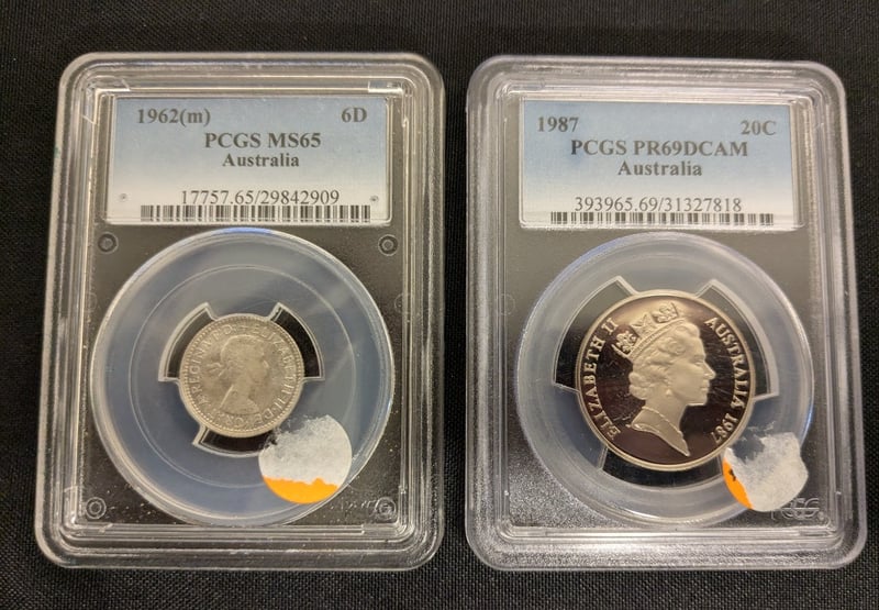 1962(M) AUSTRALIAN SIX PENCE & 1997 TWENTY CENT PROOF COLLECTION WITH PERIOD COINS 584521+9