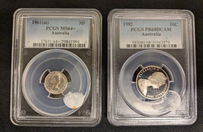 AUSTRALIA 1961 THREEPENCE AND 1982 TEN CENTS PCGS CERTIFIED COLLECTION