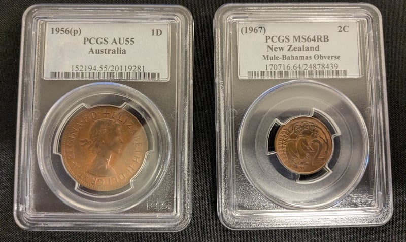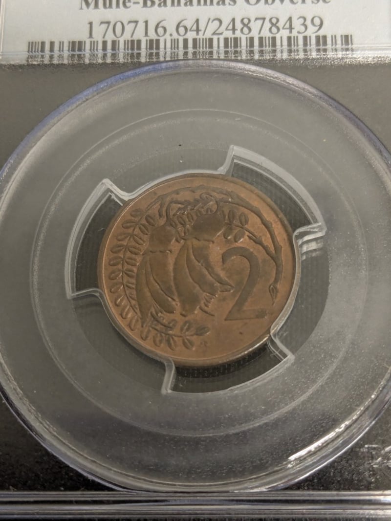 1956(P) AUSTRALIAN PENNY, 1967 NEW ZEALAND MULE BAHAMAS OBVERSE TWO CENT Condition: Aunc 584521+11