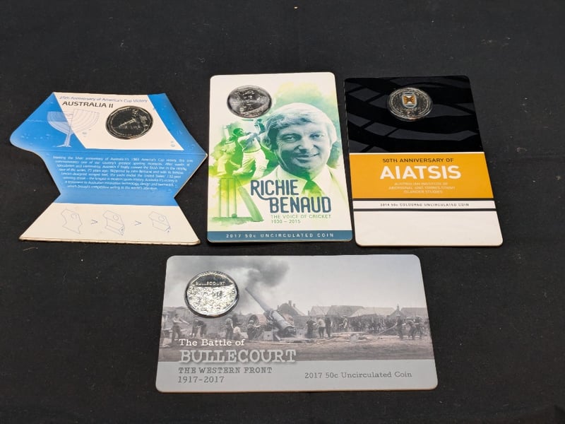 Includes 2017 The Battle Of Bullecourt Fifty Cent Coin, 2014 50Th Anniversary Of Aiatsis Fifty Cent Coin, 2017 Richie Benaud Fifty Cent Coin, 2008 25Th Anniversary Of America'S Cup Victory Fifty Cent Coin