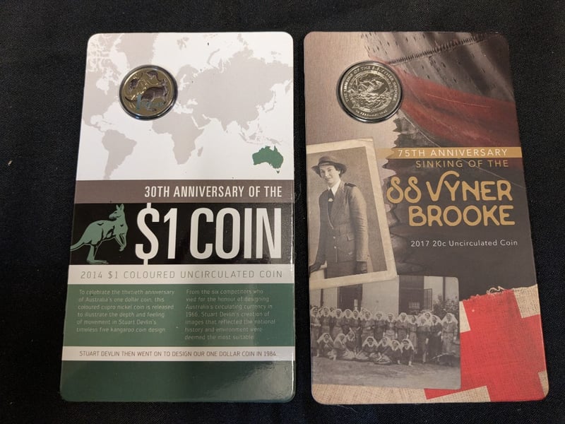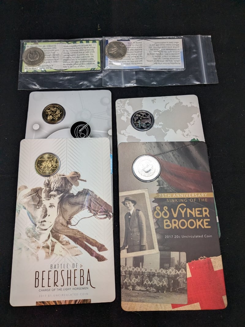 Includes 2017 Sinking Of The Ssvyner Brooke Twenty Cent Coin, 2014 30Th Anniversary Of The Australian One Dollar Coin, 2017 Battle Of Beersheba One Dollar Coin, Etc