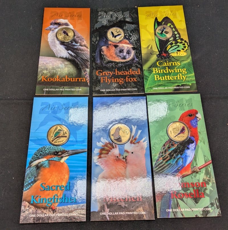 AUSTRALIAN AIR SERIES $1 PAD PRINTED COINS - COMPLETE SET OF 6