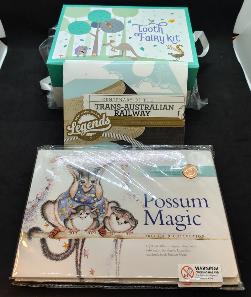 COLLECTION OF AUSTRALIAN ROYAL MINT COIN SETS Condition: Aunc Provenance: Includes: - 4X 2017 Possum Magic Collection - 2X 2017 Centenary Of The Trans-Australian Railway - 2X Tooth Fairy Kit ACACIA RIDGE 584448+31