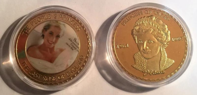 LADY DIANA 1961 - 1997 COLOUR PRINTED 999 24K GOLD PLATED COIN, ENGLAND'S ROSE 11602+1