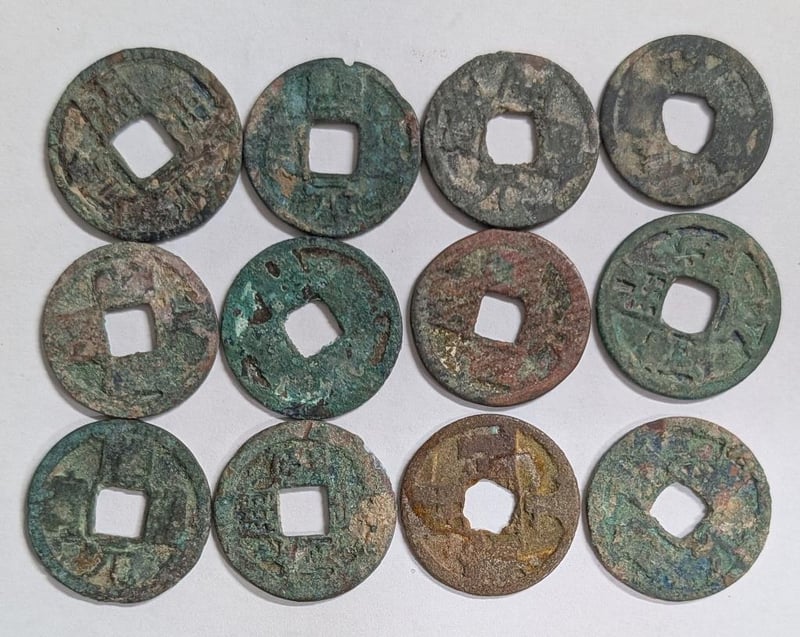 COIN COLLECTION OF A DOZEN 618-907AD TANG DYNASTY CHINA CHINESE COINSTang Coins Are Generally In The Name Of Emperor Li Yuan And He Was Named On The Coins For The Roughly 300 Years Of The Tang Dynasty Era - Even Though It Is Questionable Wither He Actually Lived That Long . So Coin Could Be Issued Anytime During The Tang Era (Li Yuan Ruled Ad 618-626). Tang Coins Were Mostly All The Same And It Is Very Difficult If Not Impossible To Get Exact Rulers Of Tang Coins.The General Style Of Tang Coins Was The Same As The Wu Shu Coins But An Average Of Between Two And A Half And Four Grams.. Wu (5) Shu Was No Longer Expressed On The Coins (They May Have Been Called K'Ai-Yuans But We Dont Know For Sure) But Were Basically Wu Shu'S By Another Name, Cast (Very Roughly But Consistently) To The Weight Standard Of 0.65 Grams Per Shu. This Was A Clever Move As It Meant That There Was No Profit In Counterfeiting Full Weight Coins. Counterfeiting Was Only Profitable When Under Weight Coins Were Cast, Which Were Much More Difficult To Pass Off. The Effort Must Have Worked As Extreme Light-Weight Examples Of Tang Coins Are Rarely Seen - Certainly A Lot Rarer Than Coins Of Earlier Dynasties. This Helped Create Economic Stability That Probably Contributed To The Success Of The Tang Dynasty. Condition: Good - Refer Images584556+40