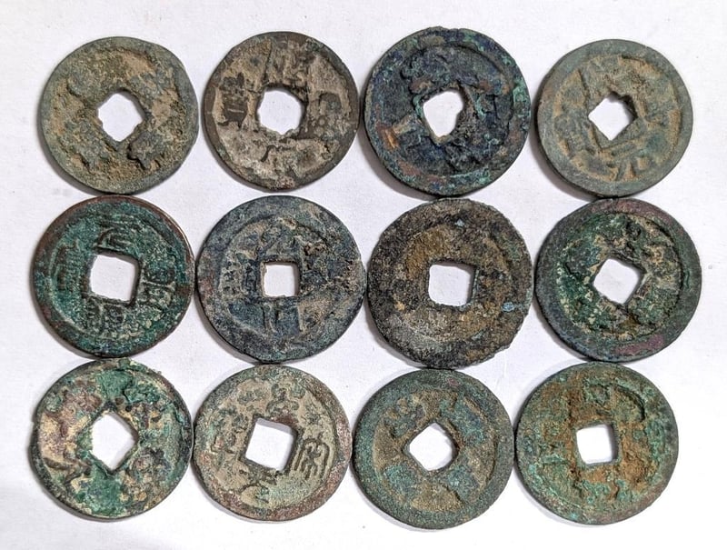 COIN COLLECTION OF A DOZEN 960-1280AD SONG DYNASTY CHINA CHINESE COINSThe Song Dynasty Was A Relatively Rich Time In Chinese History And Relatively Calm Although Conflict With The Tartars And Mongols Continued. In Ad 1127 The Northern Provinces Were Lost To Them And The Capital Had To Be Moved From K'Ai-Feng Fu (Pien-Liang) In The North To Lin-An Fu (Hangchou) In The South. We Now Refer To The Period Before The Move As The Northern Song And After The Move As Southern Song.There Were Only Nine Emperors But They Used Dozens Of Reign Titles And Many Different Inscription And Calligraphy Variations Which Defined Dates And Mints. If All The Variations Were Catalogued, They Would Number In The Thousands. Unfortunately The Key To Understanding Them No Longer Exists. Coins Were Cast In Iron And 2, 3, 5 And 10 Cash Coins Were Issued. Trade Was Flourishing And Coins Have Been Found All Along East Asian Trade Routes. Song Coins Generally Was A Continuation Of The Tang Style Weighing Roughly An Average Of 3.5 Grams To 4 Grams. A Popular Coin Series Which Has A Lot Of Varieties To Collect. Song Citizens Enjoyed A Prosperity That Later Chinese People Wouldn’T Experience Again For Hundreds Of Years.Condition: Good - Refer Images584556+41
