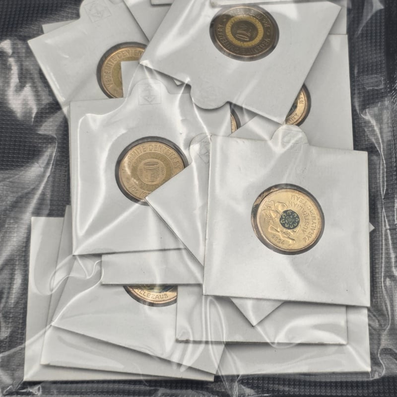 25 VARIOUS AUSTRALIAN COLOURED $1 COINS, 98% UNC 231808+21