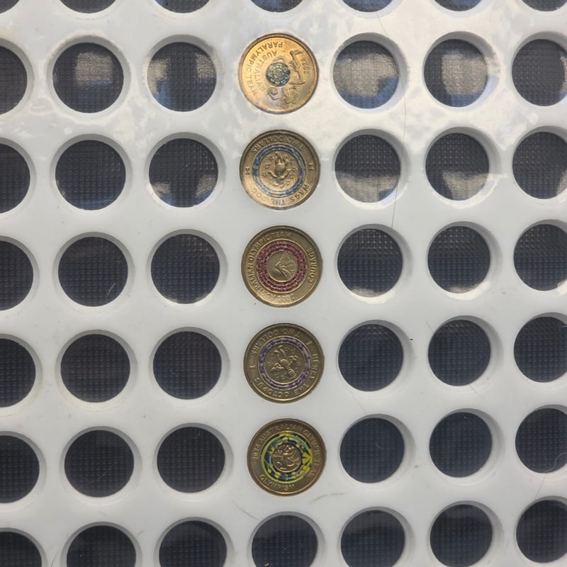 $2 COINS DISPLAY TRAY, 92 SLOTS, INCLUDING 5 $2 COINS 231808+26