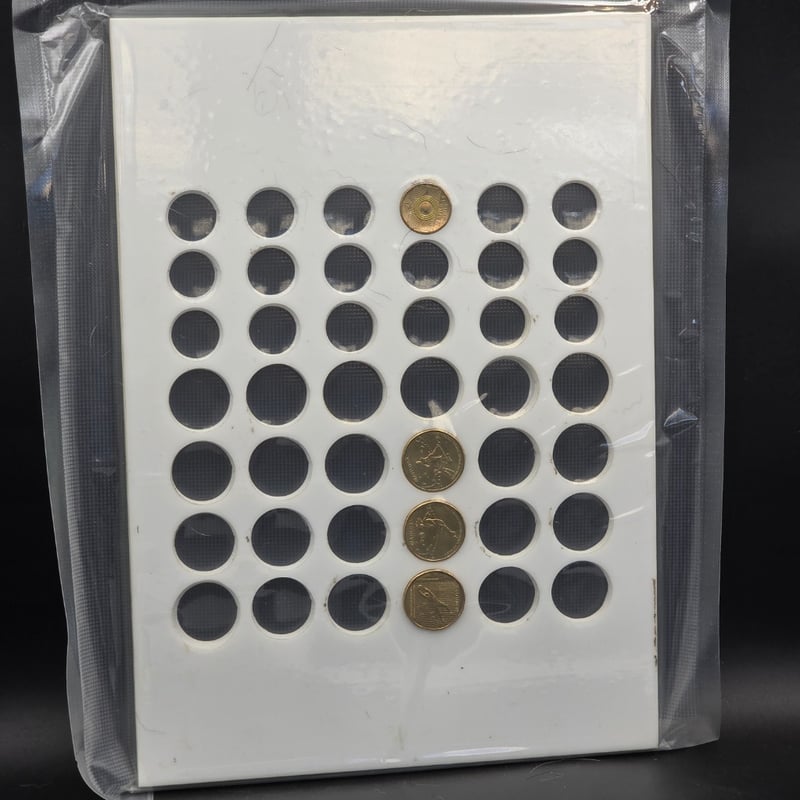 $2 AND $1 COINS DISPLAY TRAY, 42 SLOTS, INCLUDING 1 $2 COIN AND 3 $1 COINS 231808+28