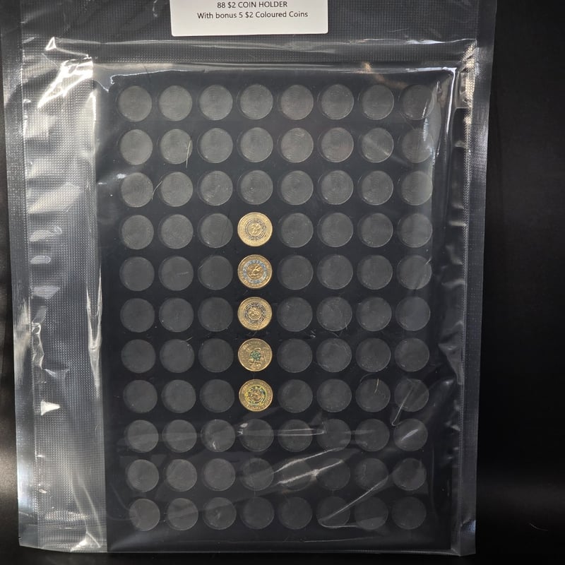$2 COINS DISPLAY TRAY, 88 SLOTS, INCLUDING 5 $2 COINS