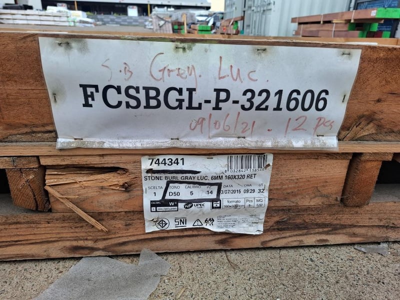 RRP $700ea, Dolce. Stone Burl Gray - Polished 3200X1600x6mm Qty:12 Dimensions: 1600mm x 3200mm x 5mm Bid Per Piece, Must Take 12
