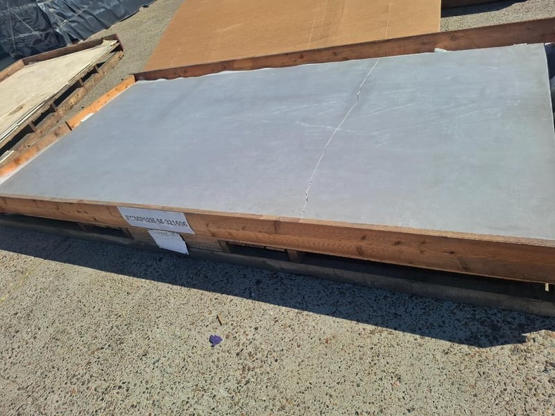 RRP $700 each Dolce. Materia Cemento 02 - Honed Facade Panels Qty: 12 Dimensions: 1600mm x 3200mm x 6mm Product #: DOL0002 Bid Per Panel, Must Take 12 Note: Top Sheet Is Broken