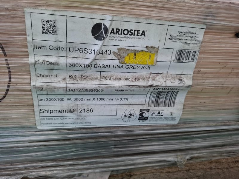 RRP $450 each MaxiA. Basalt Grey - Lappato Facade PanelsQty : 13Dimensions: 100mm x 3000mm x 6mmProduct #: MAX0020Bid Per Panel, Must Take 13Note: Top Layer Is Broken
