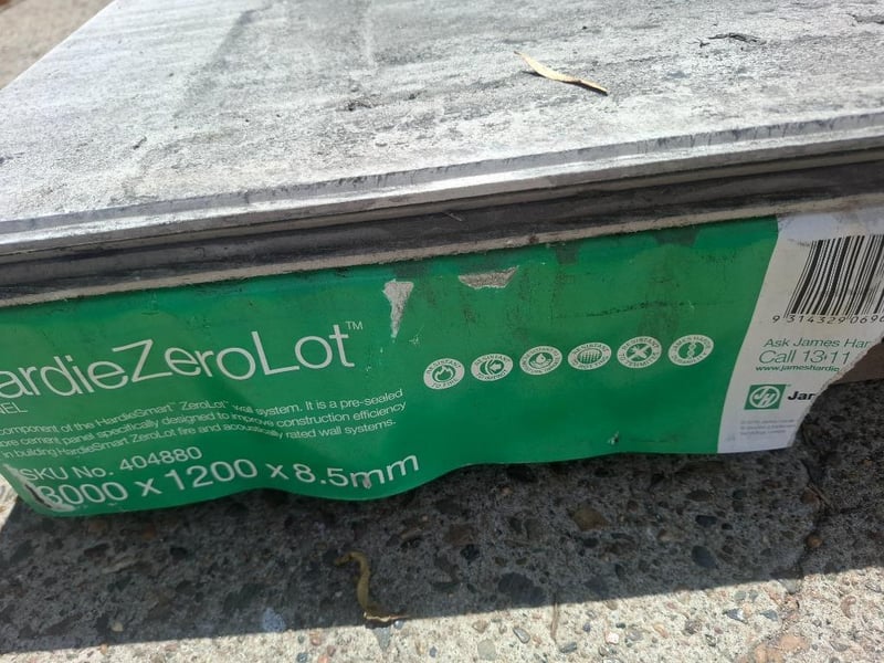 RRP $667.65ea, Hardie™ Zero Lot Panel Qty: 4 Dimensions: 1200mm x 3000mm x 8.5mm Bid Per Panel, Must Take 4