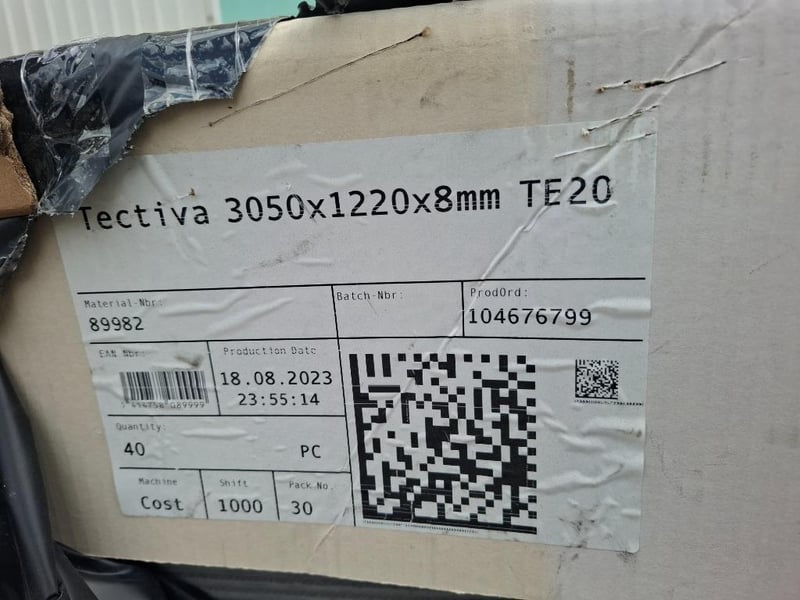 RRP of $747.14 each Tectiva - Grey Qty: 35 Dimensions: 3050mm x 1220mm x 8mm Bid Per Panel, Must Take 35 Tectiva Equitone - EQUITONE [tectiva] is a through-coloured facade material, characterised by a sanded surface and naturally occurring hues within the material. Every tectiva panel is unique, strongly expressing the raw texture of the core fibre cement material. Fire safe (no fire ignition, no spread of fire) Sound insulating Resistant to extreme temperatures and frost Water resistant (if in compliance with application guideline) Resistant to many living organisms (fungi, bacteria, insects, vermin, etc.) Resistant to many chemicals Environmentally friendly, no harmful gas emissions Strong, rigid panels