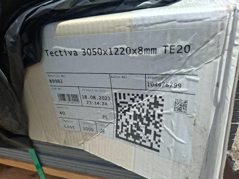 RRP of $747.14 each Tectiva - Grey Qty: 34 Dimensions: 3050mm x 1220mm x 8mm Bid Per Panel, Must Take 34 Tectiva Equitone - EQUITONE [tectiva] is a through-coloured facade material, characterised by a sanded surface and naturally occurring hues within the material. Every tectiva panel is unique, strongly expressing the raw texture of the core fibre cement material. Fire safe (no fire ignition, no spread of fire) Sound insulating Resistant to extreme temperatures and frost Water resistant (if in compliance with application guideline) Resistant to many living organisms (fungi, bacteria, insects, vermin, etc.) Resistant to many chemicals Environmentally friendly, no harmful gas emissions Strong, rigid panels