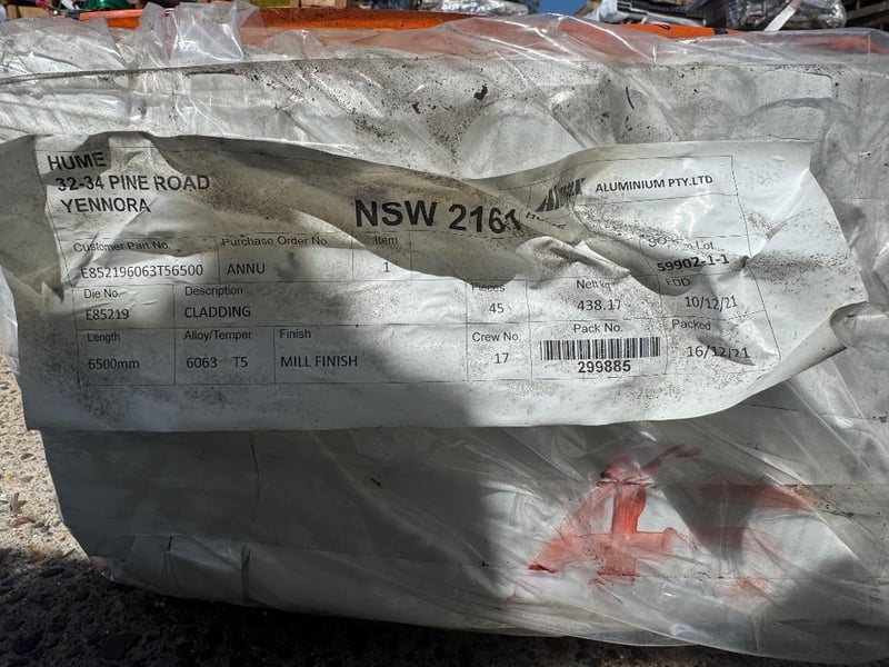 RRP $74.09ea, Aegis Aluminium Cladding 200mm 6.5m Mill Finish Qty: 45 Bid Per sheet, Must Take 45