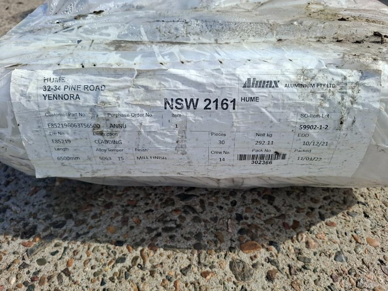 RRP $11.68ea, Mill Finish Cladding Dimensions: 6500mm length Qty: 30 pieces Bid Per Piece, Must Take 30