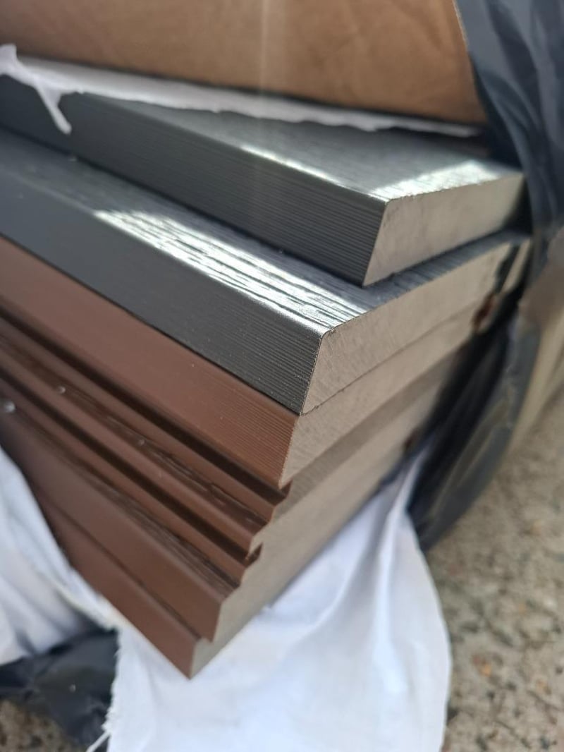 Cladding, Dark Grey/Oak Qty: 50 Dimensions: 140mm x 5400mm x 22mm Bid Per sheet, Must Take 50