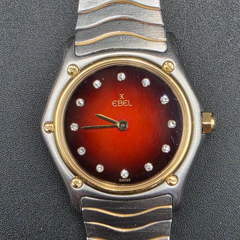 EBEL CLASSIC WAVE 231748 CIRC REFERENCE NO. 231748PRODUCTION YEAR: CIRCDIAL: DIAMONDSCASE DESCRIPTION: STAINLESS STEEL, YELLOW GOLD ACCENTSBRACELET: STAINLESS STEELMOVEMENT: SWISS QUARTZBOX: INCLUDEDPAPERS: INCLUDEDCondition: Good - Refer To Images2323998+1