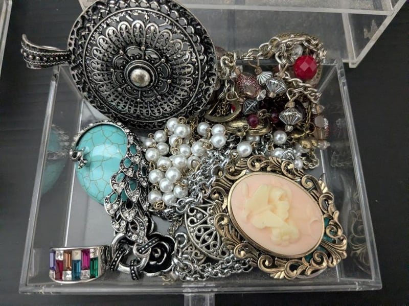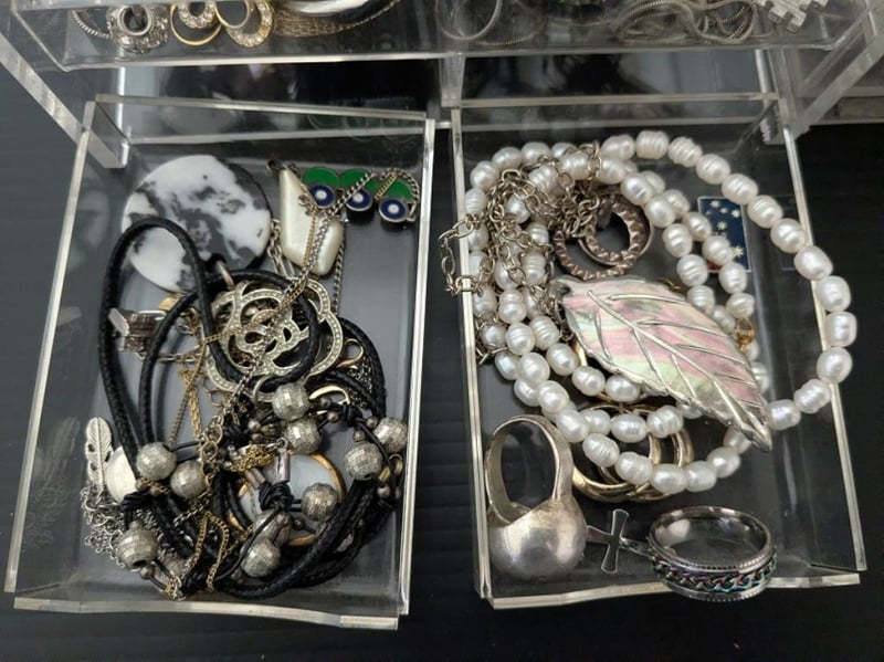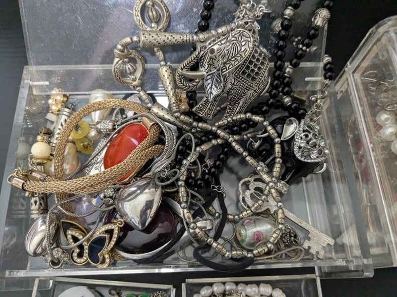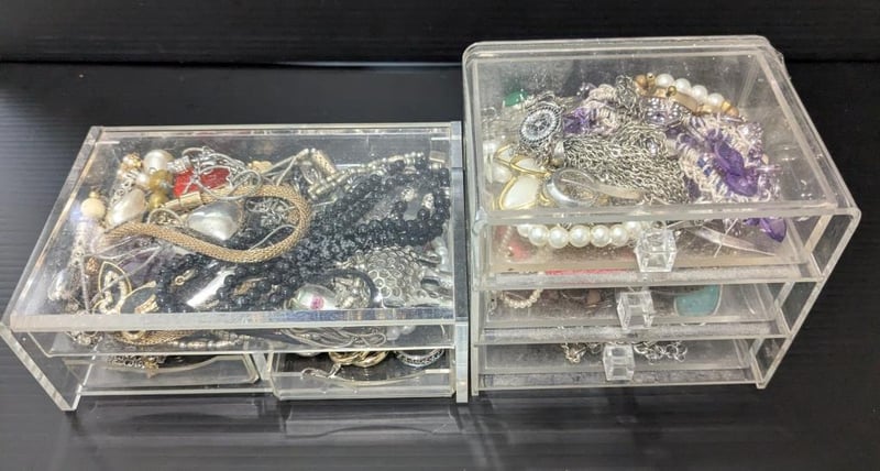 COSTUME JEWELLERY IN PERSPEX DRAWERS