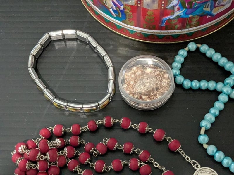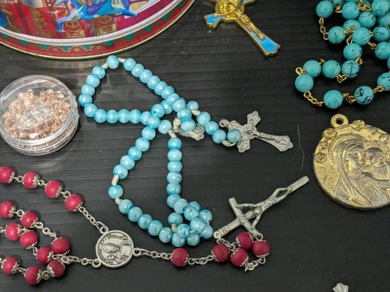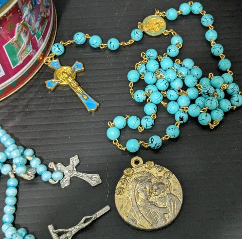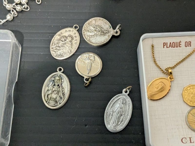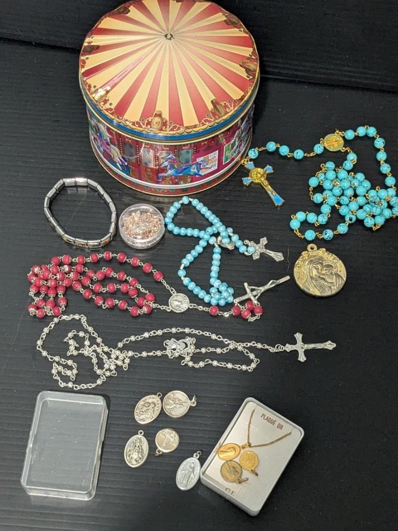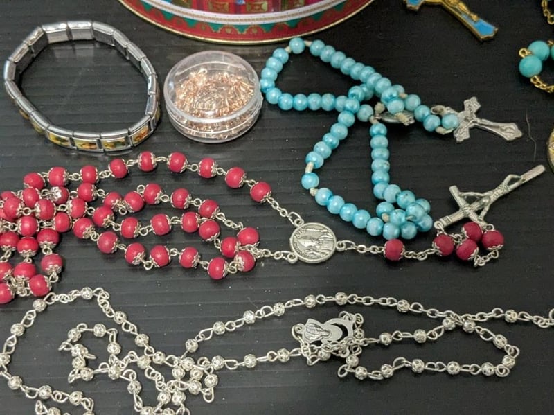 RELIGIOUS THEMED ITEMS IN CIRCUS TINIncl Rosary Beads, Medals, Pendants & BraceletCondition: Good - Refer Images587853+6