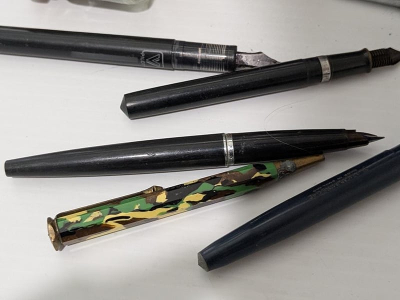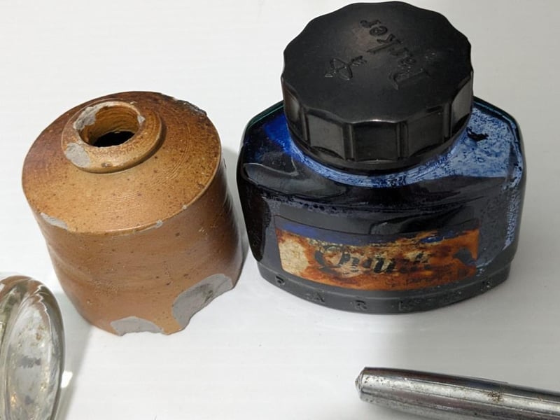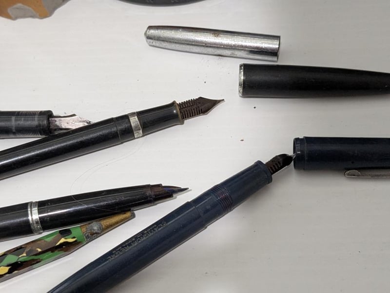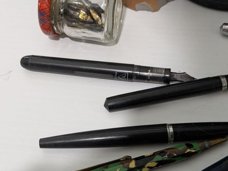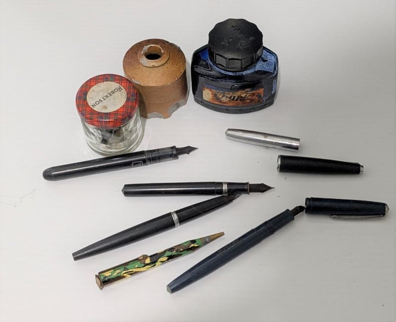 ASSORTED FOUNTAIN PENS, MECHANICAL PENCIL, NIBS & INKWELLS