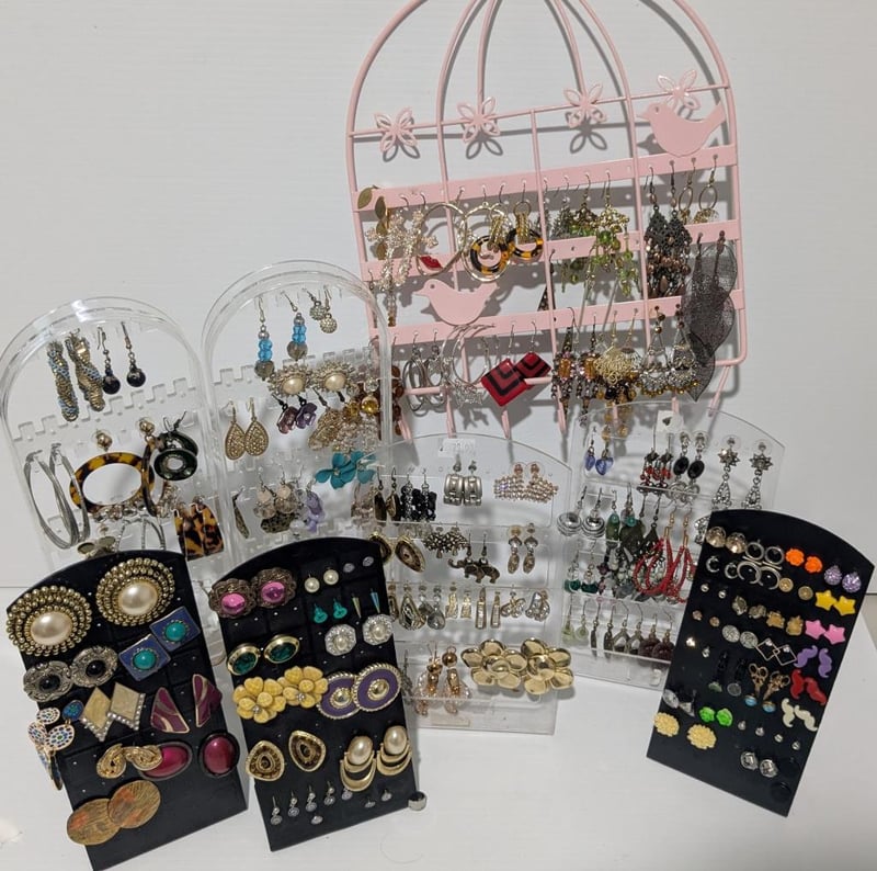 LARGE QUANTITY EARRINGS ON STANDS & HANGER