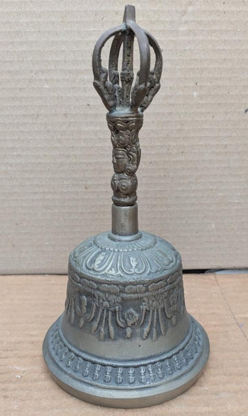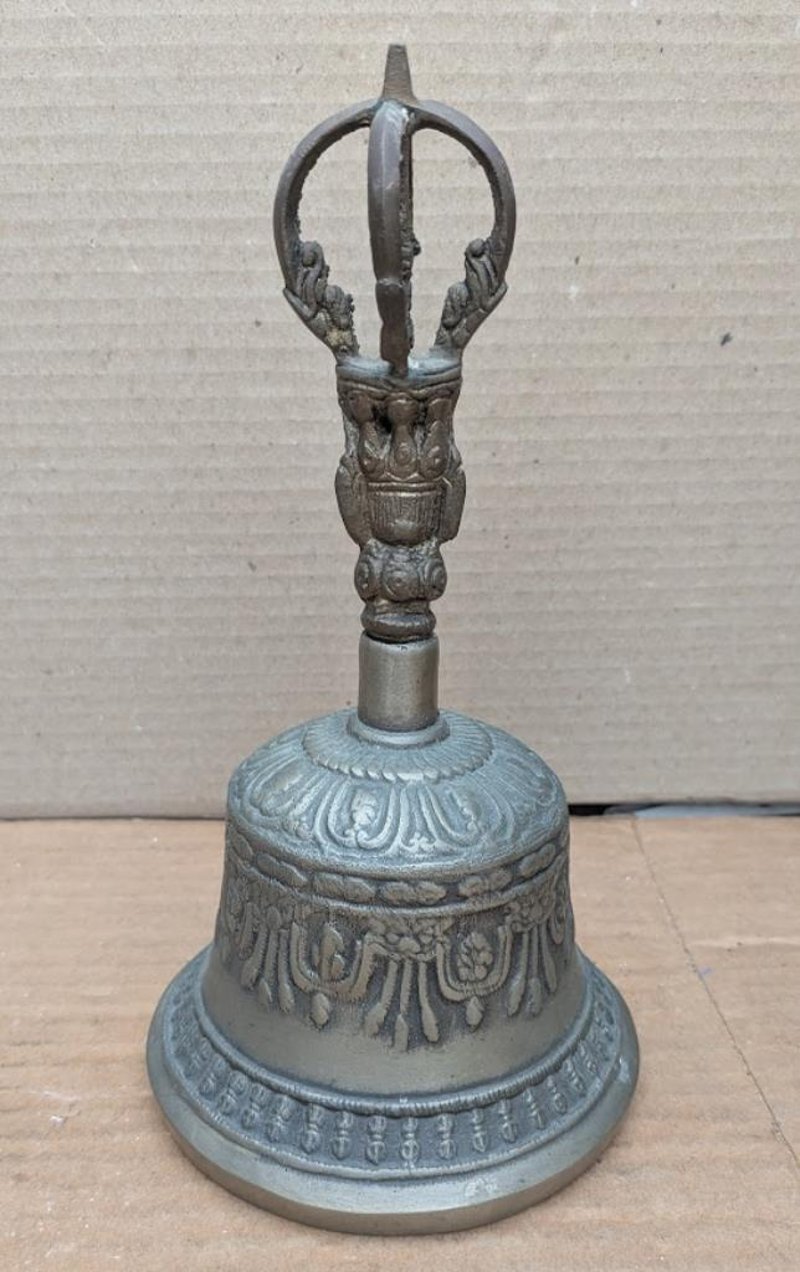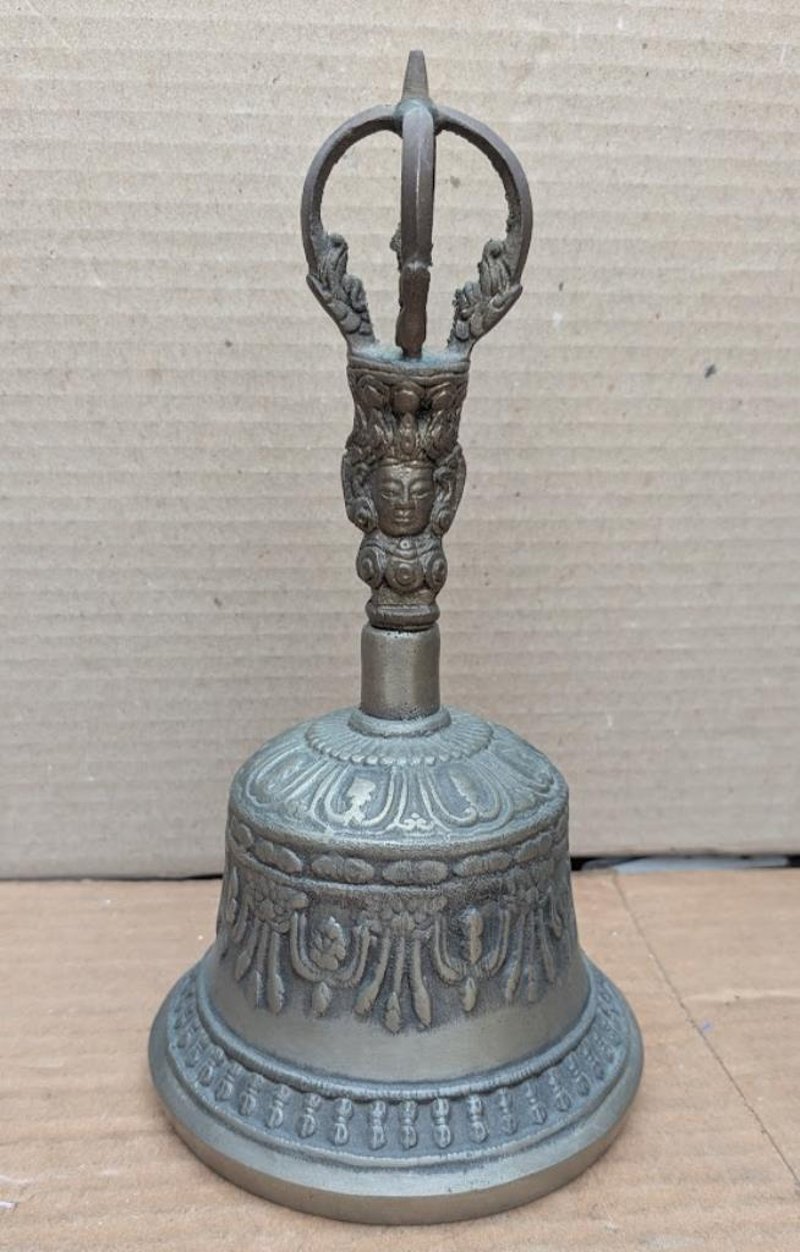 VINTAGE BRASS TEMPLE BELL WITH DONGLE 22CM TALL