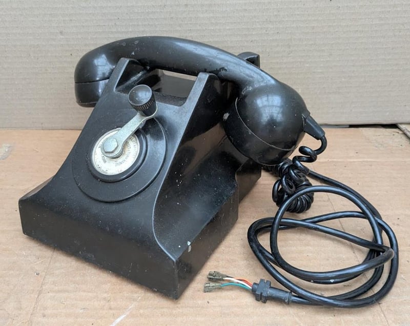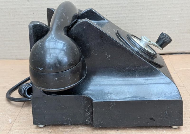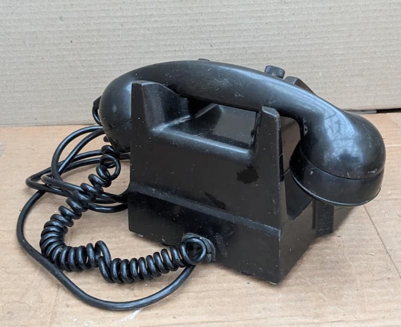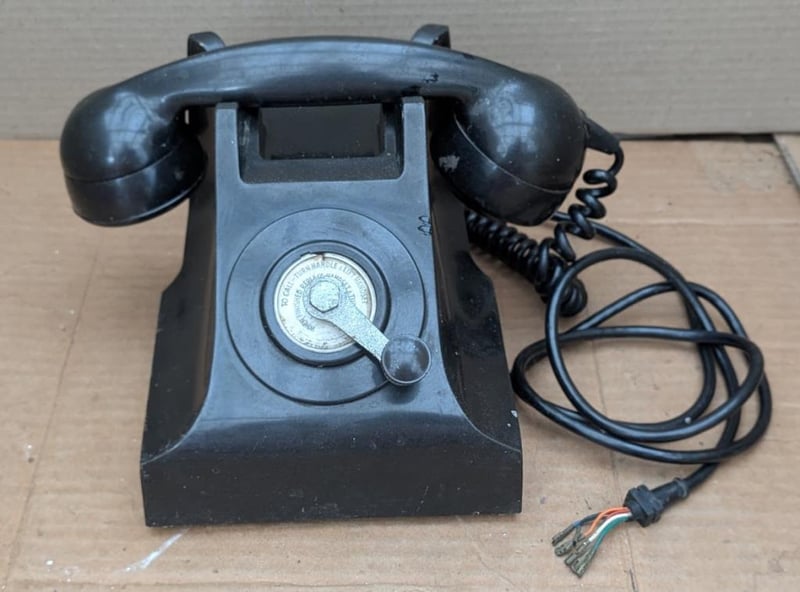 ANTIQUE BLACK BAKELITE HAND CRANK TELEPHONE 1950S